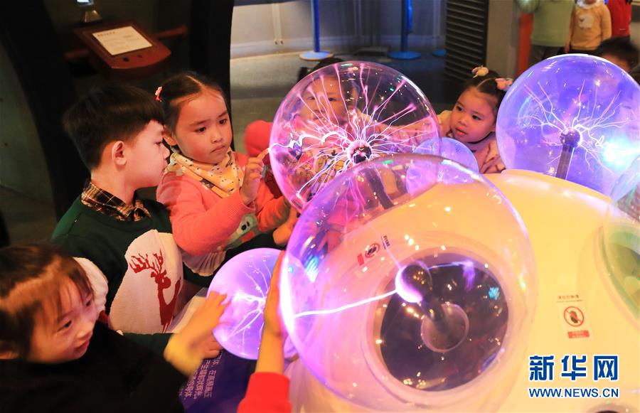 12月3日,小朋友与一组辉光球展品互动。 近日,一批新展品陆续亮相上海科技馆,涉及物理学、数学等科学内容,互动探索体验让身在其中的大朋友和小朋友们流连忘返。 新华社记者 方喆 摄