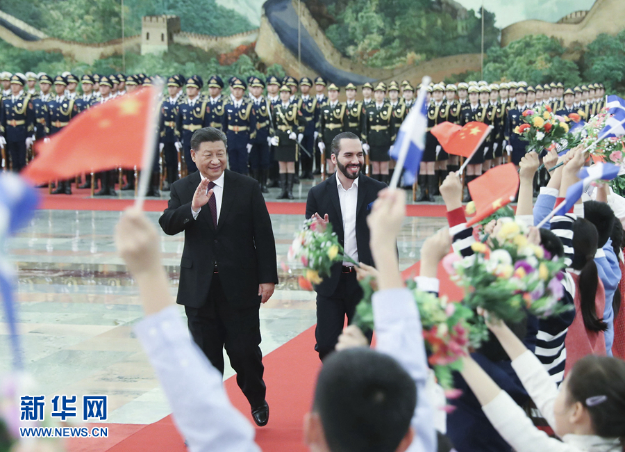 12月3日,国家主席习近平在北京人民大会堂同萨尔瓦多总统布克尔会谈。这是会谈前,习近平在人民大会堂北大厅为布克尔举行欢迎仪式。 新华社记者 姚大伟 摄
