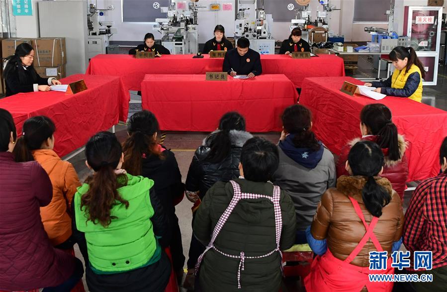 12月3日拍摄的模拟法庭“庭审”现场。 当日,安徽省肥西县花岗镇司法所联合肥西县人民法院山南人民法庭在辖区企业开展“模拟法庭进企业”活动,增强企业职工的法律意识和法治观念。 新华社记者 刘军喜 摄