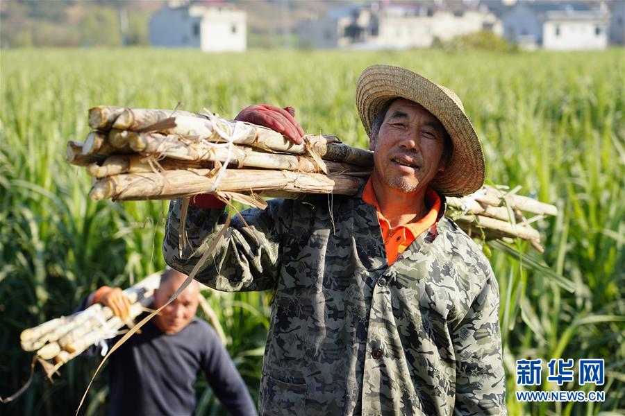 12月3日,汉滨区五里镇张营村村民在甘蔗地里采收甘蔗。新华社记者 邵瑞 摄