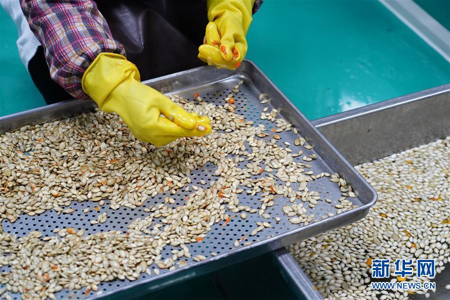 12月3日,在汉滨区五里工业集中区一家南瓜加工企业车间内,工人在清理南瓜子。新华社记者 邵瑞 摄