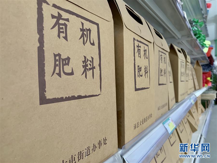 在江苏省徐州市沛县设置的生活垃圾积分兑换超市,生活垃圾加工的有机肥料可以用来种花等,实现资源化利用(11月29日手机拍摄)。 新华社记者 赵久龙 摄