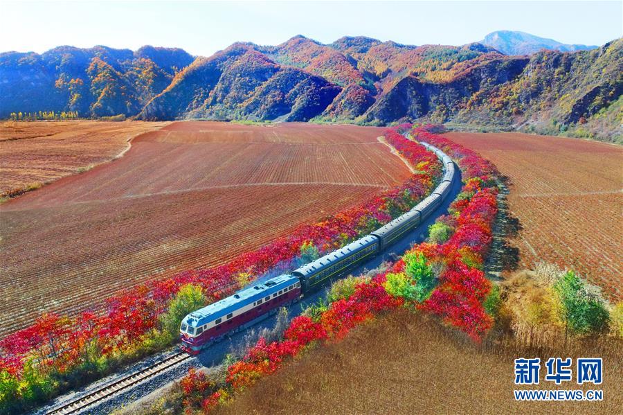 本溪市区至桓仁县的铁路(2017年10月14日无人机拍摄)。 新华社发