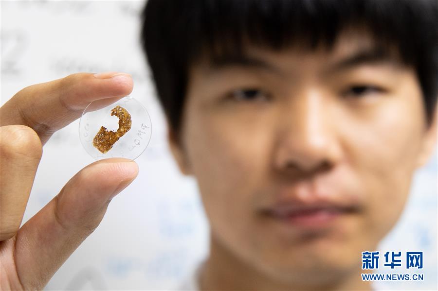 在澳门科技大学月球与行星科学国家重点实验室,学生展示制作完成的陨石切片(10月31日摄)。 新华社记者 刘金海 摄