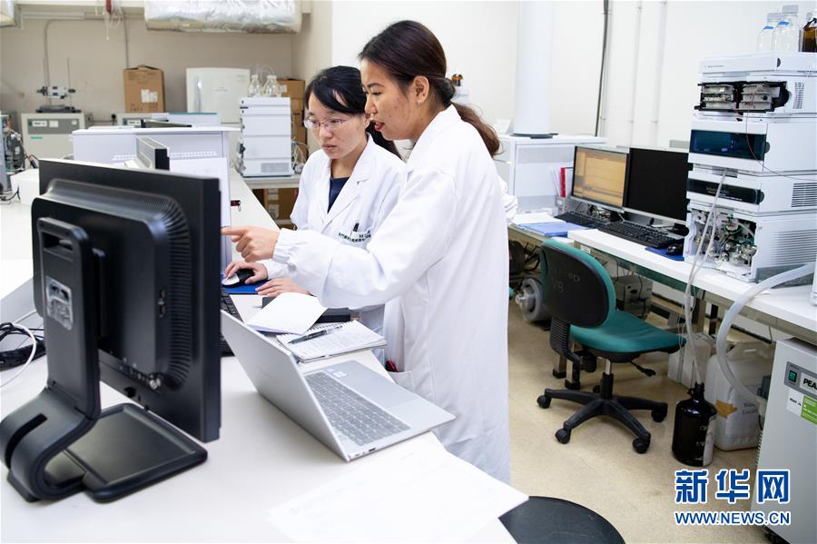 在澳门科技大学中药质量研究国家重点实验室,学生对检测数据进行分析研讨(10月30日摄)。 新华社记者 刘金海 摄
