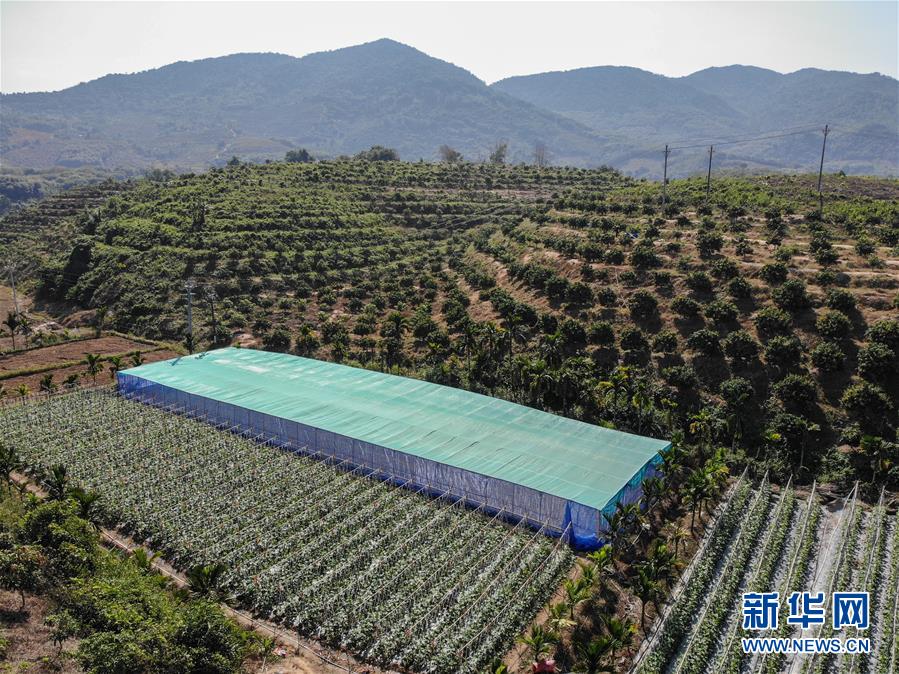 12月4日无人机拍摄的三亚市育才生态区那受村村民种植的冬季瓜菜。 近来,海南冬季瓜菜种植正逐步展开。 新华社发(张丽芸 摄)