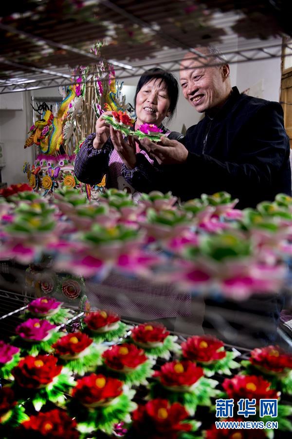 12月4日,李金贤和丈夫贾启田一起在家中制作花馍上的“面馍花朵”。 新华社记者陶明摄