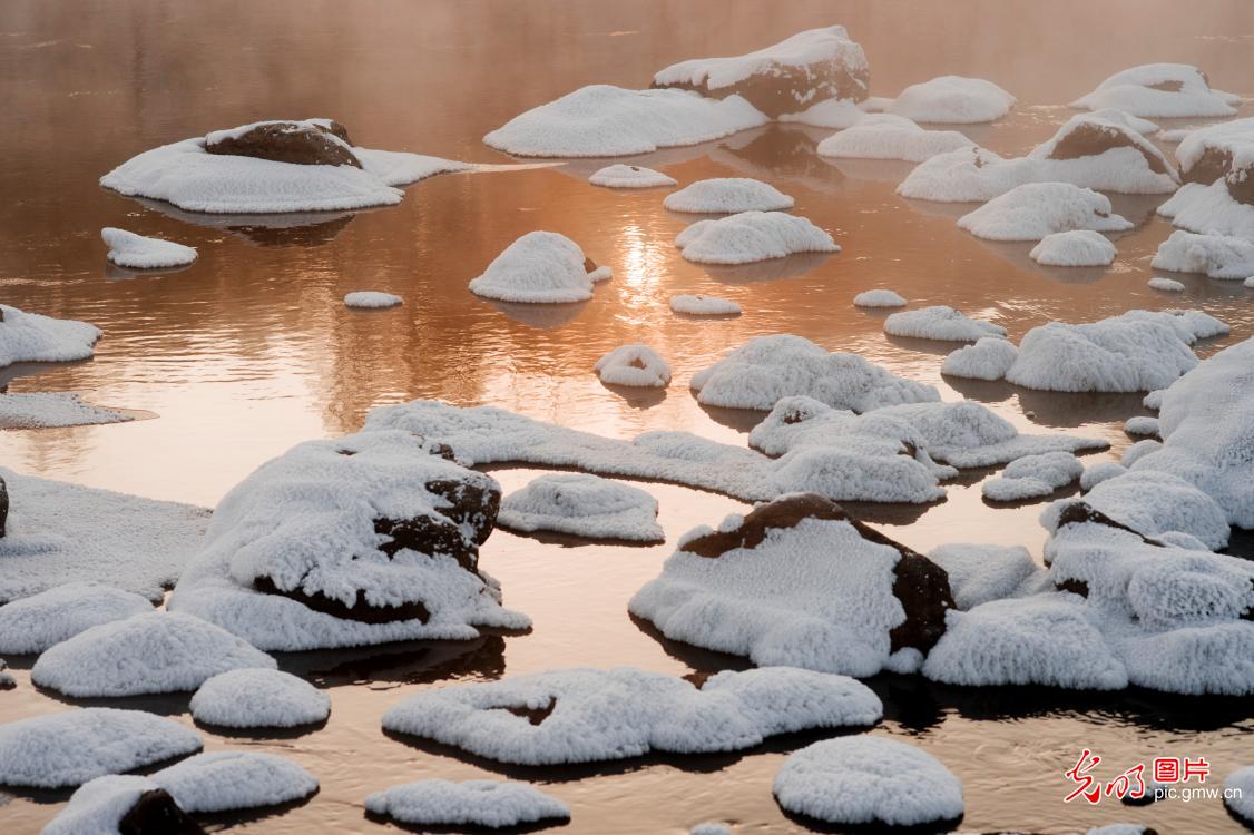 2019年12月4日在内蒙2019年12月4日在内蒙古兴安盟阿尔山市境内拍摄的"不冻河"。"不冻河"在严冬零下40多摄氏度的气温下也不结冰,与冰雪形成奇美的自然景观。(王正摄/光明图片)