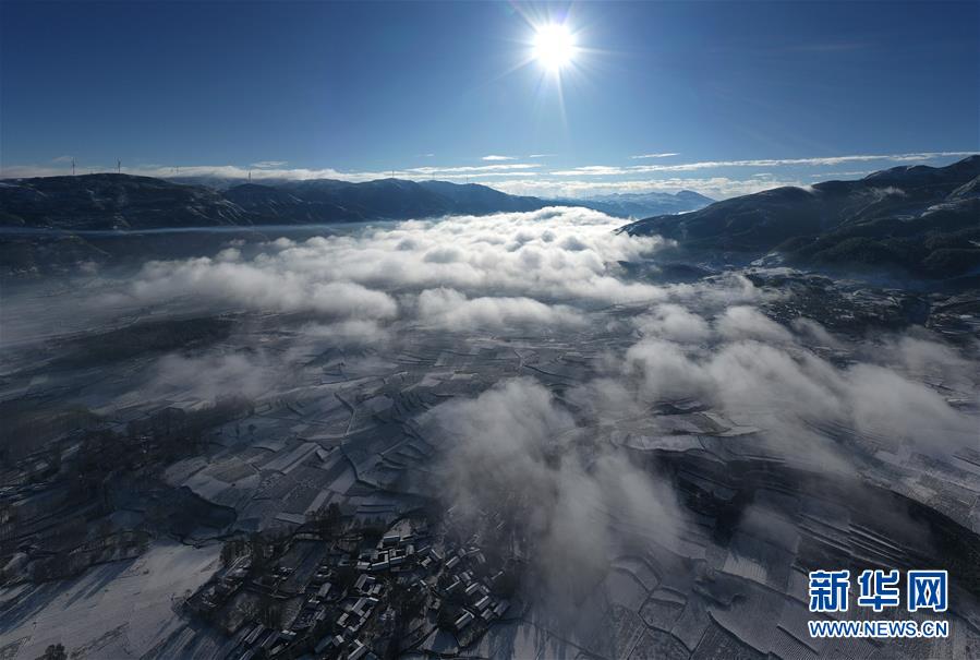 12月5日无人机拍摄的布拖县特木里镇雪景。 近日,四川省凉山彝族自治州布拖县迎来降雪,晨曦时分的特木里镇银装素裹,宛若童话世界。 新华社发(王曦 摄)