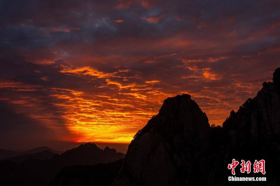 天边云彩层层,宛如火焰,景色壮观。毕俊 摄