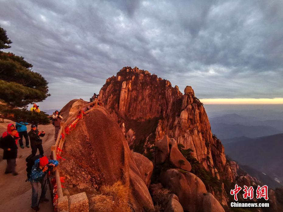黄山现落日晚霞火烧云景观