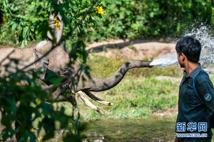 在中国云南亚洲象种源繁育及救助中心附近,一只亚洲象在野化训练中(11月13日摄)。 新华社记者 李芒茫 摄