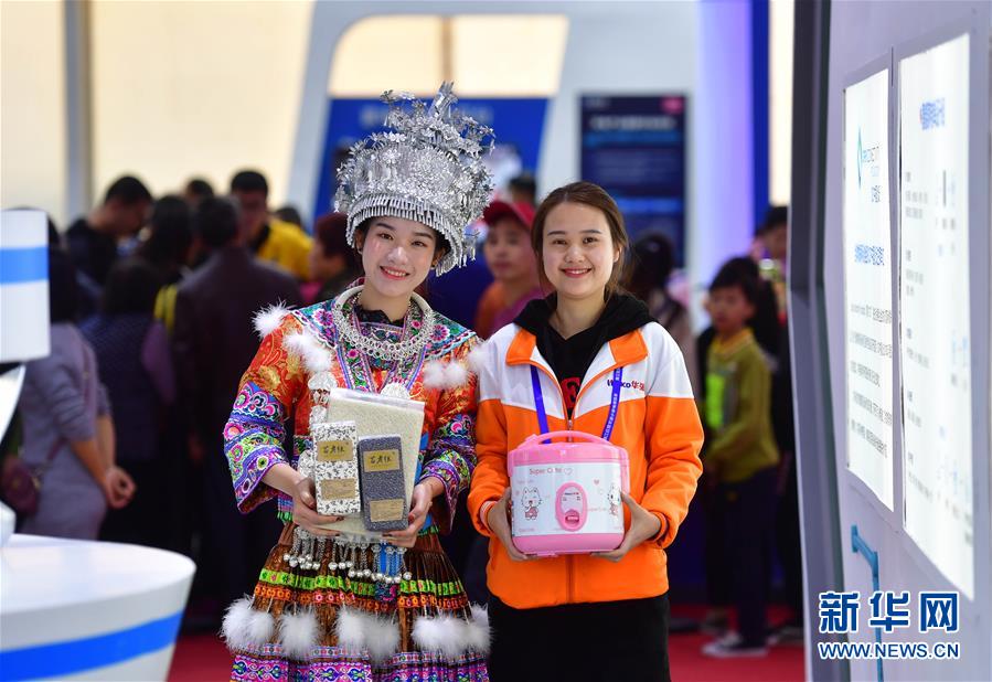 12月7日,在广东廉江红橙节暨家电博览会上,来自广西融水的参展商李键文(左)和当地参展企业工作人员分别展示大苗山粮食和廉江产的电饭锅。 当日,在广东廉江市举办的红橙节暨家电博览会上,主办方为广西融水苗族自治县举行特色脱贫产品展销和文化旅游推介活动。斗马、芦笙舞等民俗风情表演吸引了众多市民观看,来自大苗山的油茶、香糯、红薯、灵芝、银饰等苗乡特色脱贫产业产品受到廉江市民青睐。 2017年9月,广东廉江市和广西融水苗族自治县签订扶贫协作框架协议。两年多来,廉江利用资金、技术等优势支持融水脱贫攻坚工作,取得积极成效。 新华社记者 黄孝邦 摄