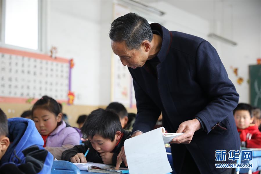 12月6日,李金海在课堂上辅导学生。新华社发(杜哲宇 摄)