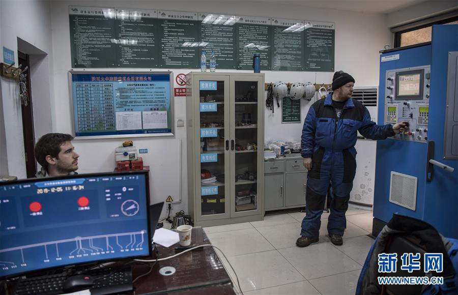 来自法国的技术人员在测试华山太华索道制动系统(12月5日摄)。 新华社记者陶明摄
