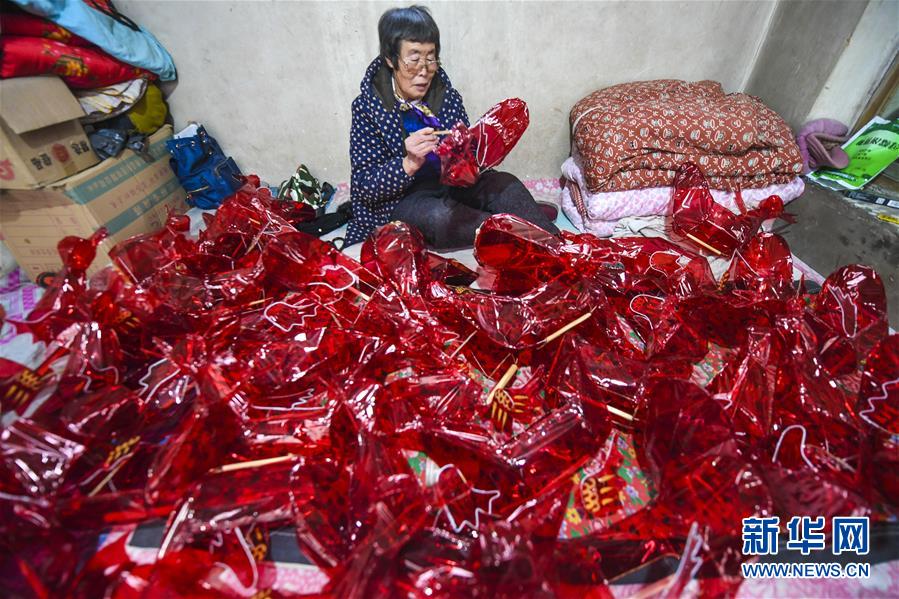 12月8日,河北省永清县后奕镇坚固庄村村民在扎制灯笼。 新华社记者 李晓果 摄