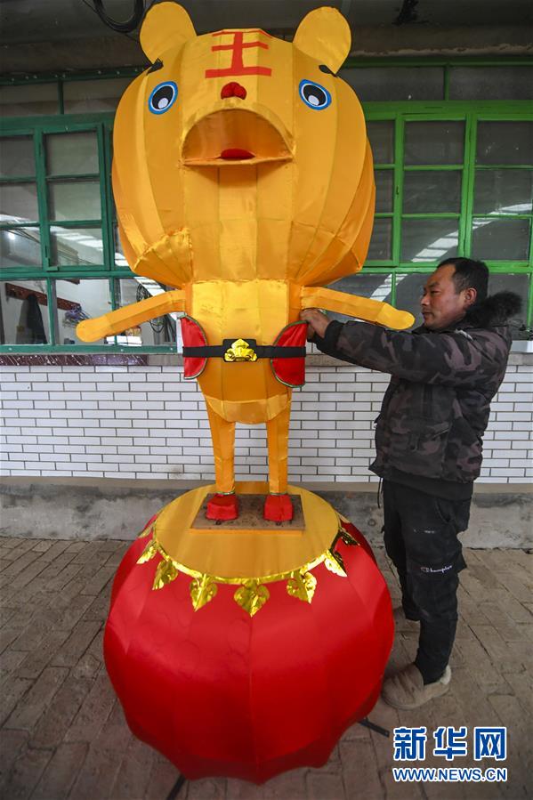 12月8日,河北省永清县后奕镇坚固庄村村民在扎制卡通灯笼。 新华社记者 李晓果 摄