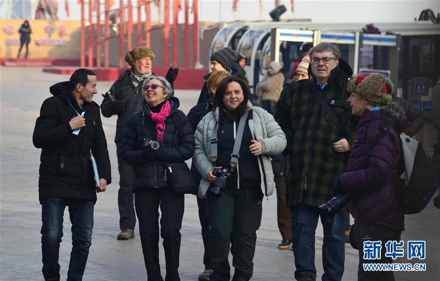 12月9日,来自澳大利亚的游客在喀什古城景区内游玩。 新华社发(阿地力江·阿不都卡德尔 摄)