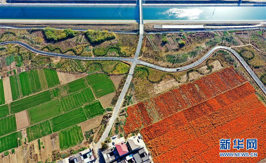 这是河北省邯郸市境内的南水北调干渠(11月14日无人机拍摄)。新华社记者 牟宇 摄
