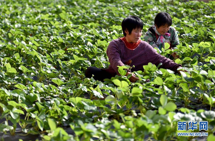 12月11日,河北省南和县郝桥镇一家现代农业示范园区工人在温室内管理草莓。新华社记者 朱旭东 摄