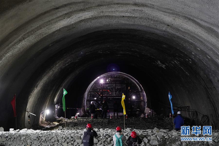 12月12日,记者拍摄贯通的京沈高铁梨花顶隧道。 当日,京沈高铁全线最后一个隧道——梨花顶隧道顺利贯通。该隧道也是京沈高铁京冀段里程最长、施工难度最大的隧道,它的贯通标志着京沈高铁建设取得突破性进展。 京沈高铁承德至沈阳段已于2018年12月29日正式开通运营,北京至承德段正在建设中,全线建成通车后北京至沈阳的高铁运行时间将缩短至2.5小时左右。 新华社记者 鞠焕宗 摄