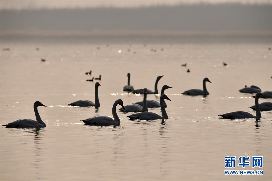 白天鹅“约会”黄河湿地
