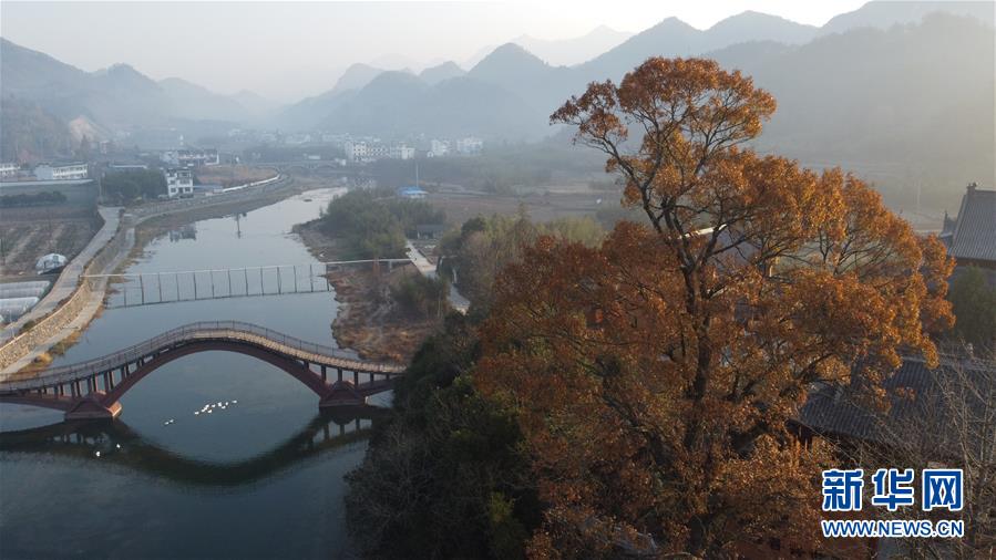 12月13日无人机拍摄的龙川村晨景。新华社记者 张端 摄