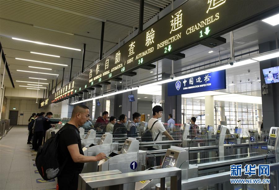 在港珠澳大桥澳门边检大楼,旅客从自助查验通道通关去往广东珠海(11月21日摄)。新华社记者 徐亮 摄