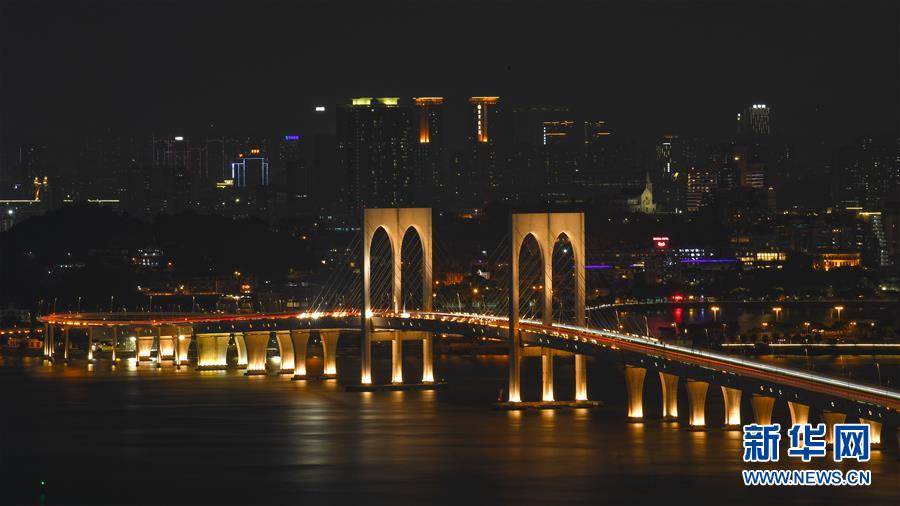 夜晚亮灯的澳门西湾大桥(12月12日摄)。新华社记者 梁旭 摄