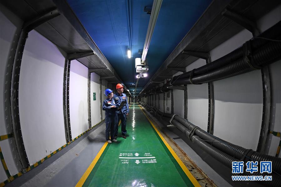 在珠海横琴综合管廊电力隧道里,南方电网工作人员操作巡检机器人对电缆隧道动态巡检(12月12日摄)。新华社记者 梁旭 摄
