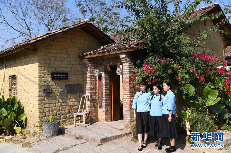 游客在广西玉林市福绵区福绵镇十丈村一座修葺一新的农家院前留影(12月12日摄)。 广西玉林市福绵区福绵镇十丈村曾是一个贫困村,旧民居一度破败不堪。2017年底,当地聘请专业的乡村建设设计师团队,对70余座传统旧民居进行了修复改造。焕然一新的村容村貌为村民发展乡村旅游注入了新活力,贫困村重焕生机。 新华社记者 周华 摄