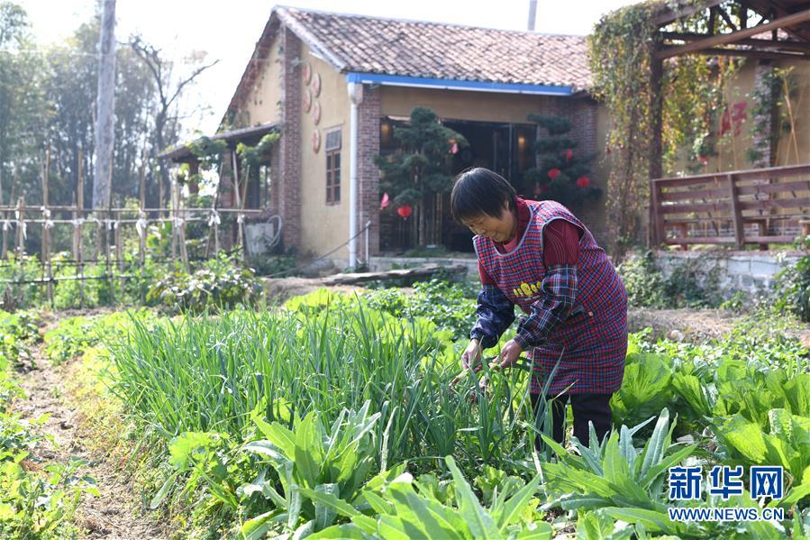 广西玉林市福绵区福绵镇十丈村村民在摘菜,为农家乐客人准备食材(12月12日摄)。 广西玉林市福绵区福绵镇十丈村曾是一个贫困村,旧民居一度破败不堪。2017年底,当地聘请专业的乡村建设设计师团队,对70余座传统旧民居进行了修复改造。焕然一新的村容村貌为村民发展乡村旅游注入了新活力,贫困村重焕生机。 新华社记者 周华 摄