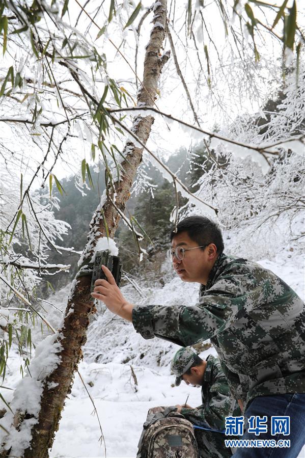 12月13日,巡护员许可(上)和张雄在检查已安装红外相机的工作情况。新华社发(杜哲宇 摄)
