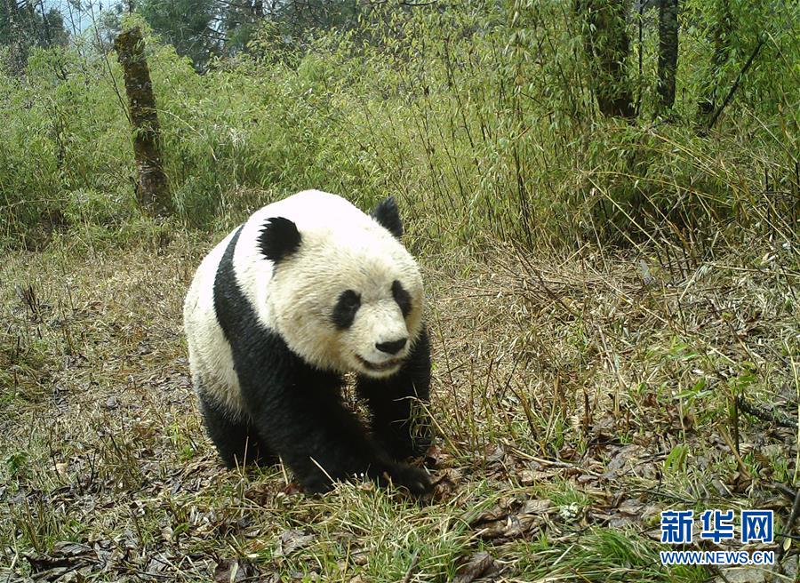 这是在甘肃白水江国家级自然保护区内布设的红外相机拍摄的野生大熊猫活动影像(红外相机4月13日摄)。新华社发(杜哲宇 摄)