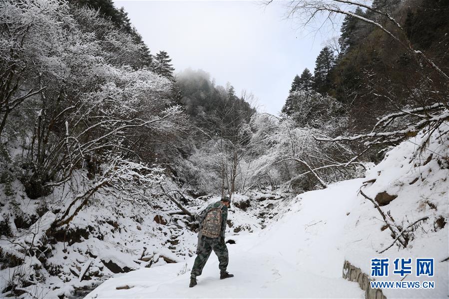12月13日,巡护员张雄在巡护途中。 新华社发(杜哲宇 摄)