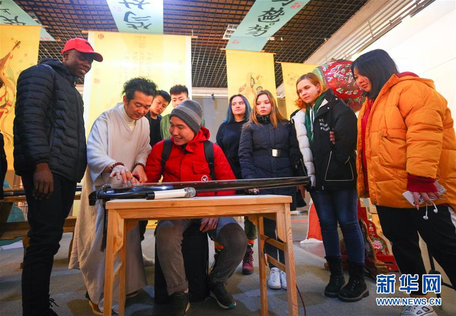 12月14日,古琴演奏家李佳(左二)指导鞍山师范学院学生弹奏古琴。 当日,鞍山师范学院举办“松风起”古琴文化艺术展,将古法斫琴的重要工序进行集中展示,并邀请辽宁鞍山籍古琴演奏家李佳进行现场演奏。许多观众在悠扬的琴声中参观,体验传统文化的独特魅力。 新华社记者 龙雷 摄