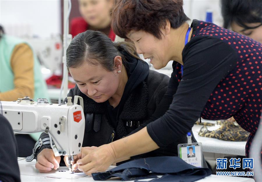 在昭苏县洪纳海镇,老师为参加培训班的农牧民讲解缝纫技巧(12月14日摄)。新华社记者 丁磊 摄