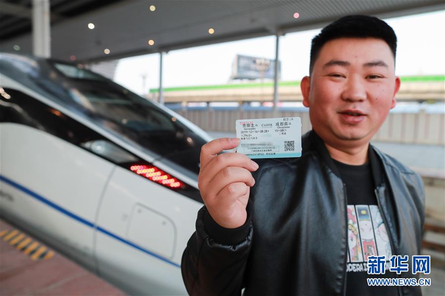 12月16日,一名旅客在贵阳北站展示成贵高铁C6008次列车车票。 当日,成贵高铁全线通车。成贵高铁起于四川省成都市,终至贵州省贵阳市,线路全长648公里,设计时速250公里。 新华社记者 刘续 摄