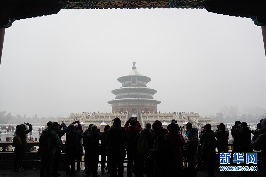 12月16日,人们在天坛公园观赏雪景。 当日,北京迎来降雪天气。 新华社记者 鞠焕宗 摄