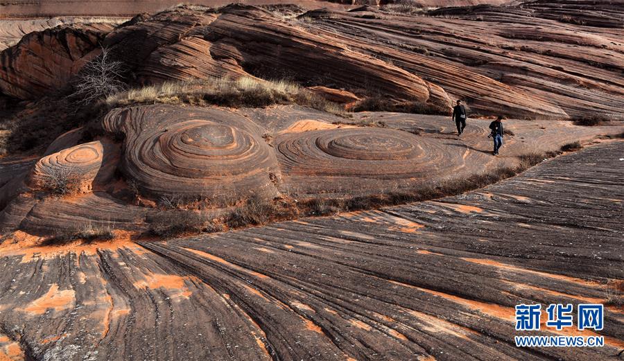 12月16日,游人在志丹县杏河镇丹霞地貌“螺旋谷”参观。新华社记者 陶明 摄