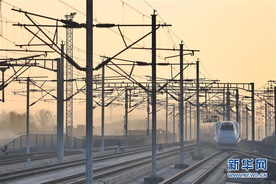 12月16日,一列动车组列车从成贵高铁毕节站驶出。新华社记者 欧东衢 摄