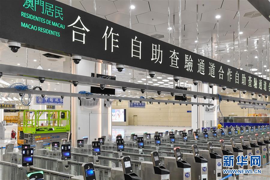 技术人员在新横琴口岸一楼入境大厅调试闸口设备(12月10日摄)。新华社记者 卢烨 摄