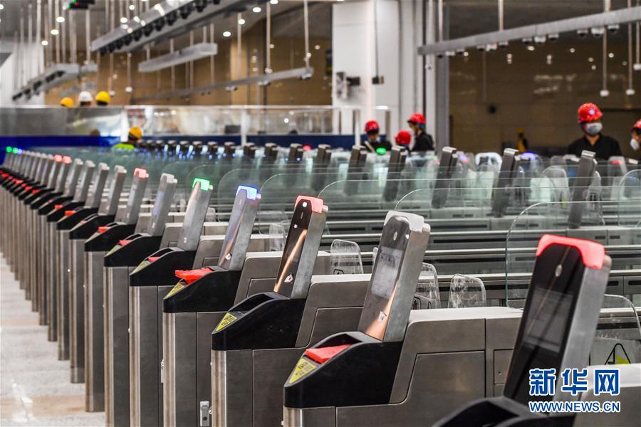 技术人员在新横琴口岸一楼入境大厅调试闸口设备(12月10日摄)。新华社记者 卢烨 摄