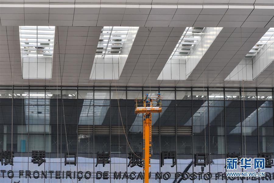 中建装饰集团深圳装饰公司施工人员在新横琴口岸东广场进行装配式幕墙施工(12月10日摄)。新华社记者 刘大伟 摄