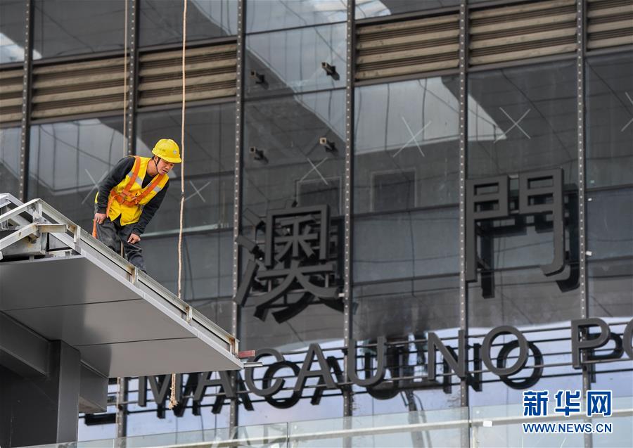 中建装饰集团深圳装饰公司施工人员在新横琴口岸东广场进行装配式幕墙施工(12月10日摄)。新华社记者 刘大伟 摄
