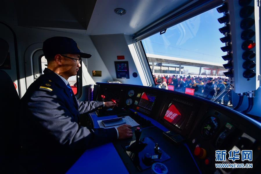 12月18日,在青海格尔木,中国铁路青藏集团有限公司西宁机务段列车司机季仁千扎西在开通仪式上准备发车。 当日,随着肃北至马海区段通车,敦煌铁路全线开通运营,中国西北地区形成首条环形铁路网。 新华社记者 张龙 摄