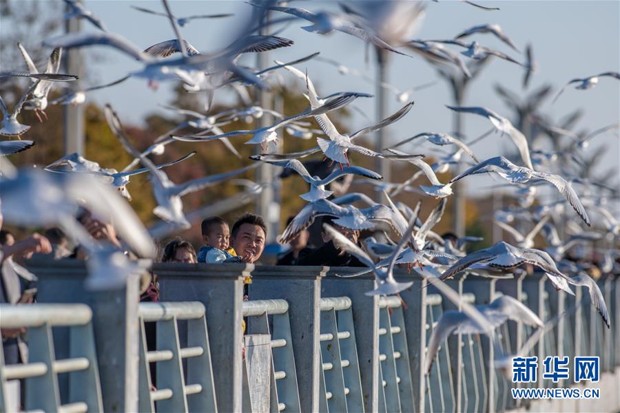 12月18日,人们在昆明海埂大坝观赏、投喂红嘴鸥。 近日,“春城”昆明阳光明媚,气候宜人,市民游客纷纷来到海埂大坝、翠湖公园等地,与前来越冬的红嘴鸥近距离接触,人鸥同乐。红嘴鸥是云南昆明的“荣誉市民”,每年秋冬季都会来到昆明越冬。 新华社记者 胡超 摄