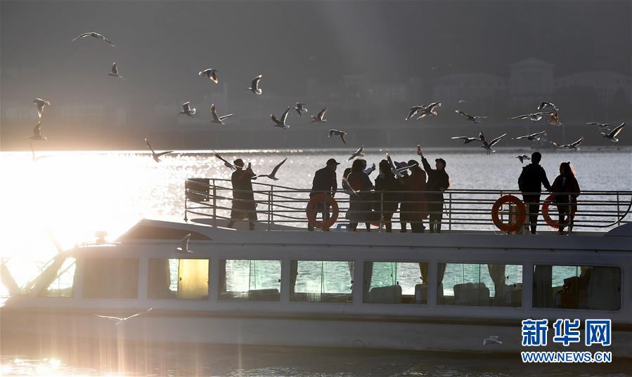 12月18日,市民和游客在滇池草海乘坐游船观赏红嘴鸥。 近日,“春城”昆明阳光明媚,气候宜人,市民游客纷纷来到海埂大坝、翠湖公园等地,与前来越冬的红嘴鸥近距离接触,人鸥同乐。红嘴鸥是云南昆明的“荣誉市民”,每年秋冬季都会来到昆明越冬。 新华社记者 蔺以光 摄