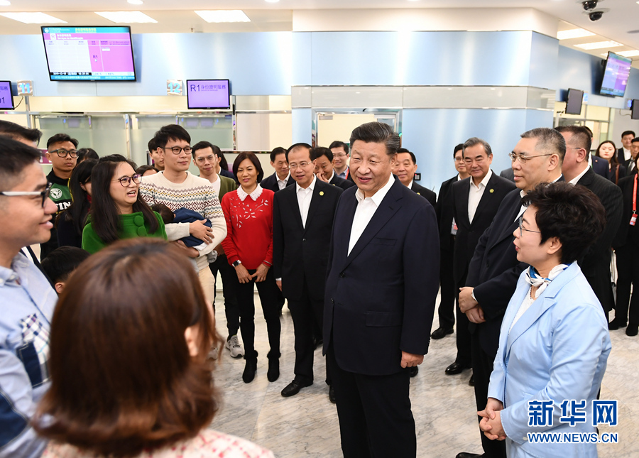 12月19日,国家主席习近平在澳门特别行政区行政长官崔世安陪同下,来到位于澳门黑沙环的政府综合服务中心和濠江中学附属英才学校,同澳门市民和师生亲切交流。这是习近平在黑沙环政府综合服务中心同澳门市民亲切交流。 新华社记者 谢环驰 摄