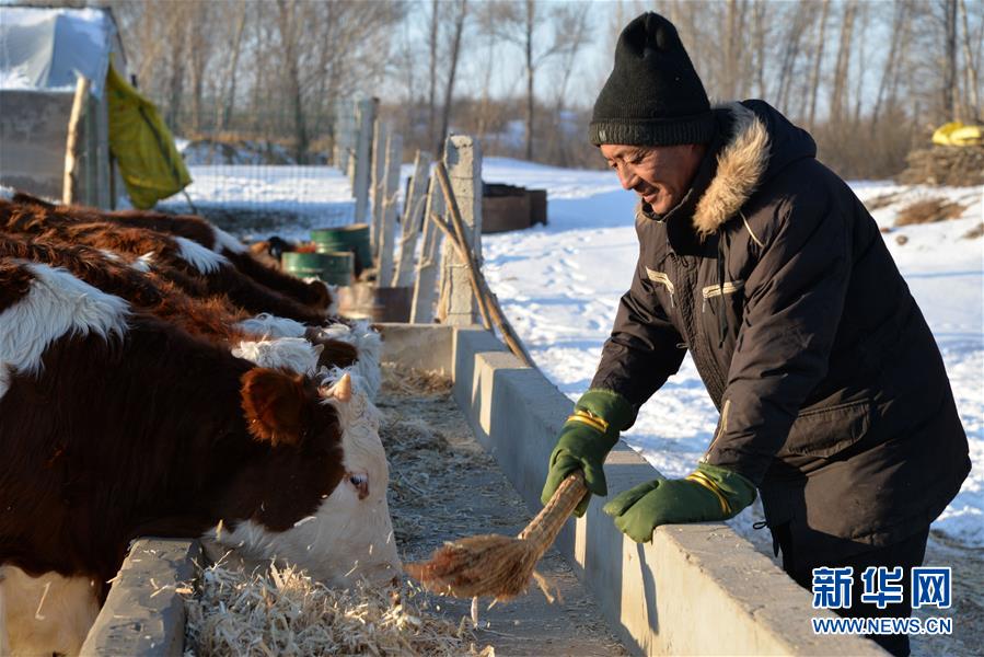 12月19日,科左后旗巴嘎塔拉苏木伊和布拉格嘎查的村民仁钦昵玛在家中饲养黄牛。仁钦昵玛家于2018年10月脱贫,目前养殖黄牛18头。 新华社记者徐钦摄